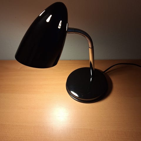 Fluelampe kan stå på et bord eller sættes op på væggen. Vingerne kan justeres.