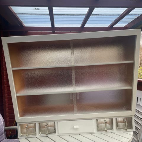 Københavnerskab / køkkenreol med glasskuffer