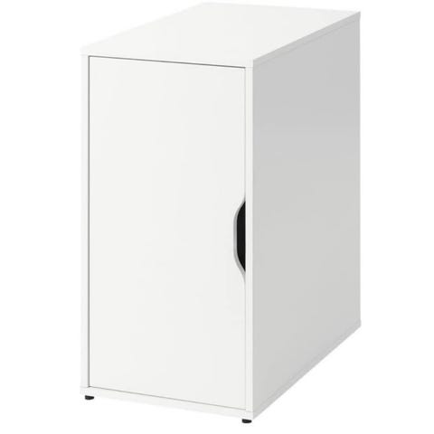 tre moduler, reol er 47 cm bred, har været sat sammen med reolen i midten så der er to huller i hver side af reolen og i en af hver side af skabene. Det ene skabsmodul er i god stand, det andet skal have nye hyldebunde.
