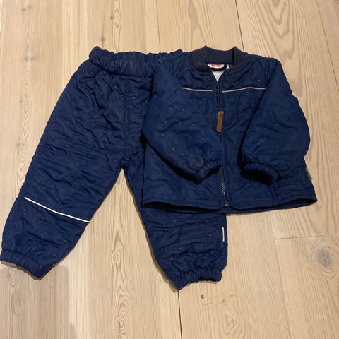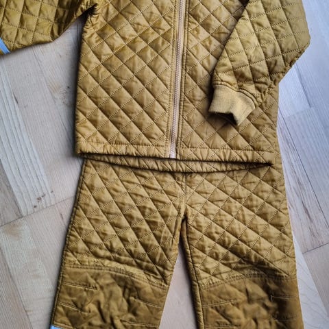 CeLaVi termotøj til dreng i størrelse 80. Sættet er grønt og lavet af polyester. Det består af jakke og bukser med quiltet design og reflekser for øget synlighed.