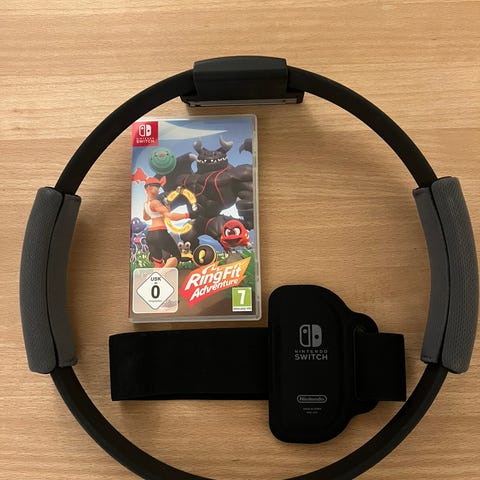 Nintendo Ring Fit Adventure til Nintendo Switch inkluderer spil og tilbehør som Ring-Con og benrem. Spillet kombinerer fysisk træning med eventyrspil, hvor brugeren udfører øvelser for at styre spillet. Tilbehøret er designet til brug med Nintendo Switch-konsollen. Brugt en enkelt gang af en voksen, men underboen klagede over larm. Originalemballage blev smidt ud ifm. flytning, men både ring og rem dufter stadig nyt, og spillet er 100% intakt. Kommer fra røgfrit hjem, heller ej husdyr!