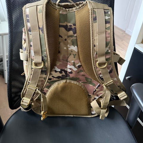 New View fodrende kikkerttaske i camouflagefarvet materiale. Tasken har flere rum til opbevaring og justerbare skulderstropper for komfortabel bæring. Velegnet til transport og beskyttelse af kikkert og tilbehør.