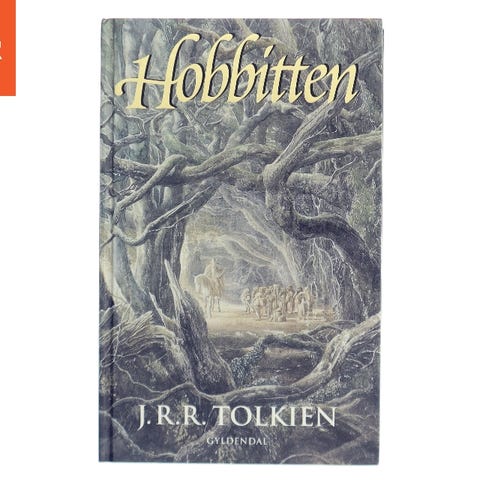 Billedet viser forsiden af en dansk udgave af J.R.R. Tolkiens klassiske roman Hobbitten. Bogen er udgivet af Gyldendals Bogklubber.