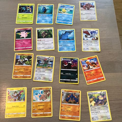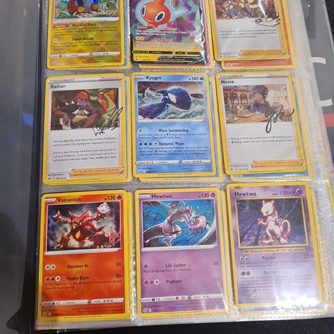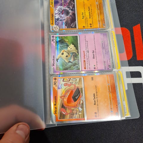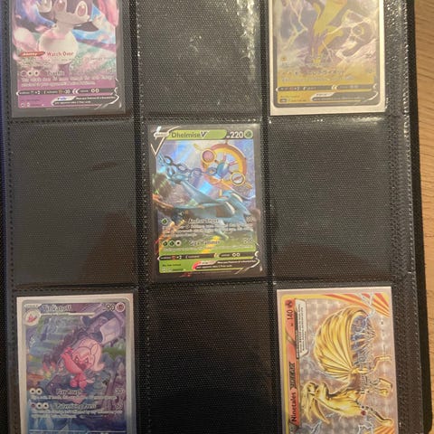 Pokémon samlekort opbevaret i plastiklommer. Kortene varierer i motiv og farve. Anvendt til samling og opbevaring af Pokémon kort.