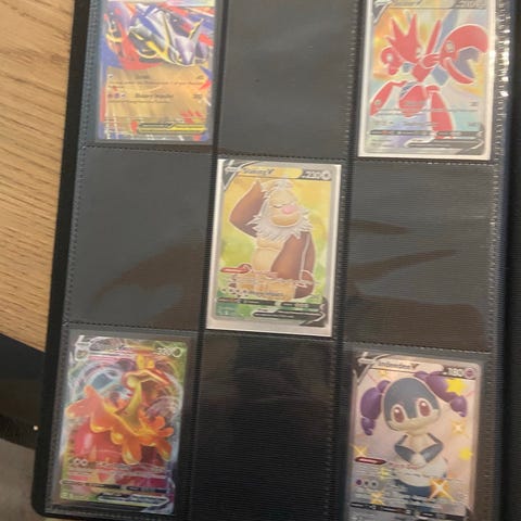 Pokémon samlekort opbevaret i plastiklommer. Kortene er placeret enkeltvis i lommerne, som beskytter dem mod slid og skader. Anvendelig til opbevaring og organisering af samlekort.