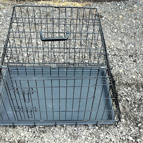 Brugt til én hund, der er en lille rift på kanten af plastbakken og den hage der bruges til at lukke/holde fast buret når klappet sammen er knækket. Pris sat derefter. Men buret fungerer ellers uden problemer.