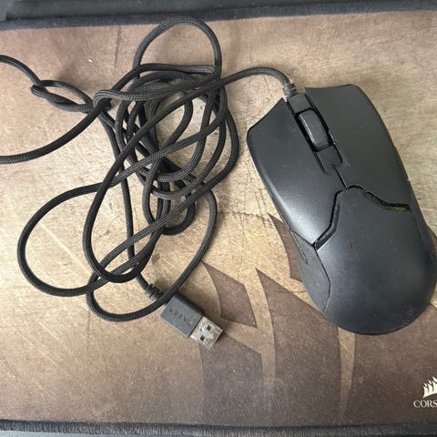 Razer mus, musemåtte og corsair tastatur.