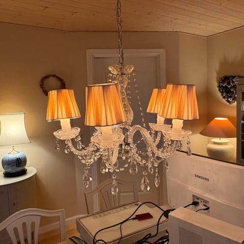 Super smuk prisme lysekrone. Nem at rengøre hver prismekæde i sæbevand.