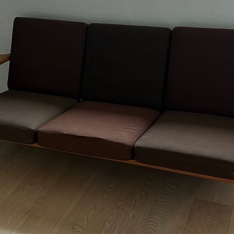 Smuk og original Hans J. Wegner GE290 3-personers sofa, 2 stk lænestole og sofabord produceret af GETAMA.