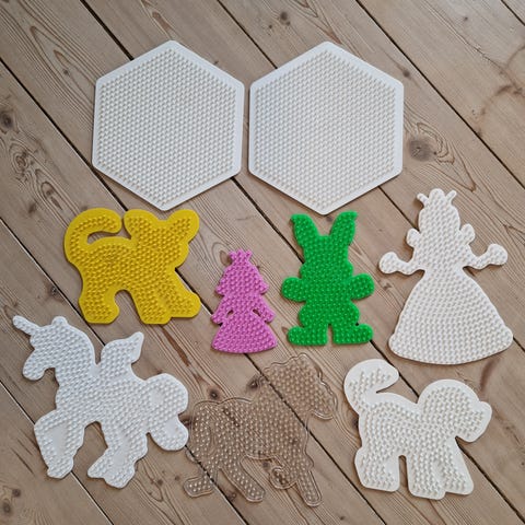 Alletiders startsæt med plader og perler til mange timers sjov. Pladerne er selvfølgelig brugte, men der er stadig mange timers kreahygge tilbage i dem.