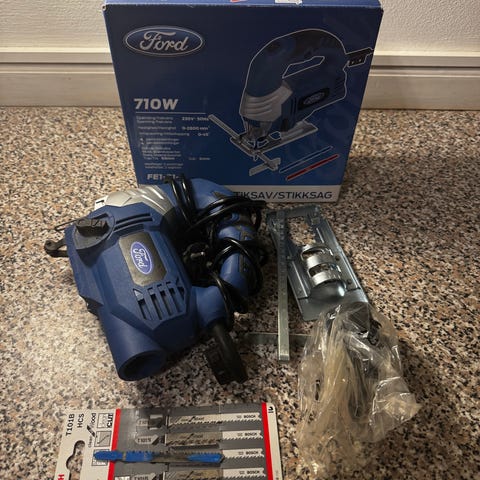 Elu 713 Mühlacker ST 142 stiksav med en effekt på 450 watt. Saven har 2 hastigheder og justerbar klinge, kasse og diverse savklinger medfølger