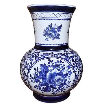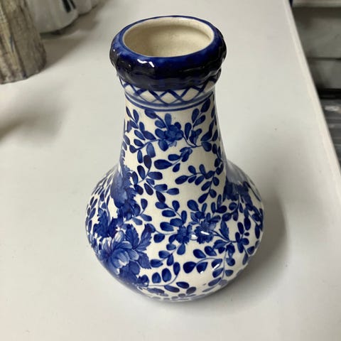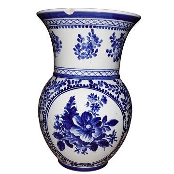 Virkelig flot antik fajancevase. Ca. 16 cm høj - ingen skår, afslag e.lign - gennemsigtige krakeleringer - tynd indvendig hårrevne i halsen - meget "brugt" nede i bunden (indvendigt) - holder fint tæt.
