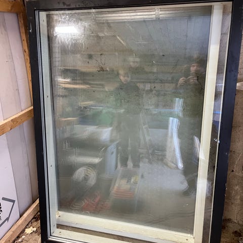 4 stk Vindue dobbeltramme hvid træ 119x119 cm åben for bud, afhentes.
