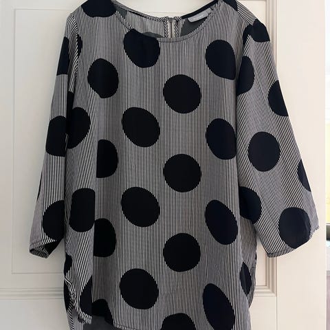 Fransa bluse i størrelse L til kvinder. Blusen er beige med guldprikker og lavet af polyester.