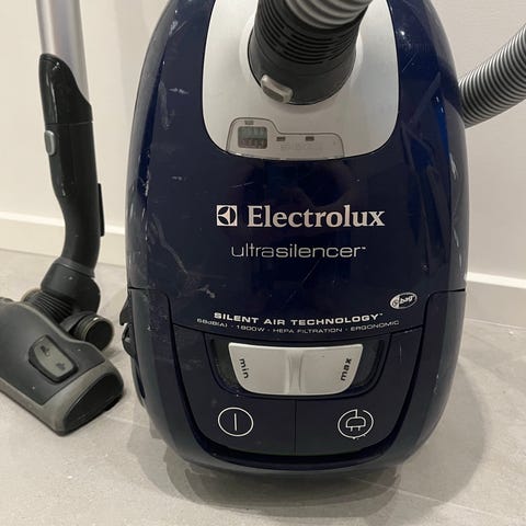 Electrolux UltraSilencer støvsuger i sort farve, har tidligere vundet bedst i test. Støvsugeren har en kompakt design med teleskoprør og forskellige mundstykker til rengøring. Den er udstyret med en pose til opsamling af støv og snavs. Velegnet til almindelig rengøring i hjemmet.