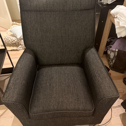 Stor lænestol med puf. Skal hentes i Sabro.