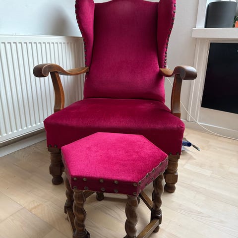 Stor lænestol med puff