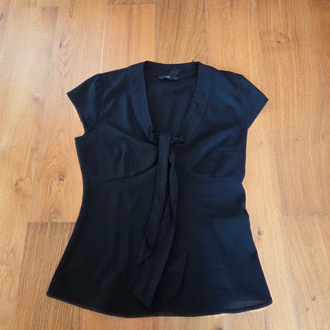 Bluse, sort, v-hals, 3/4 ærmer str. S