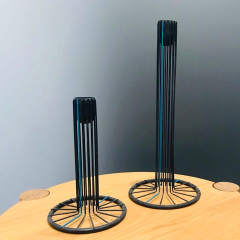 2 stk. rigtig pæne beigefarvede lysestager/opsats i metal. Kan også bruges som opsats til dekoration.