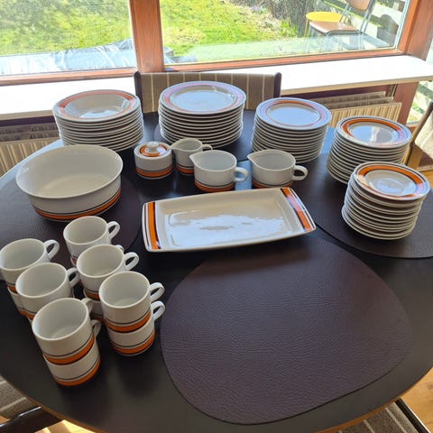 Porcelæn, Kaffe stel, Kahla, 4 Sæt kopper og 5 tallerkener