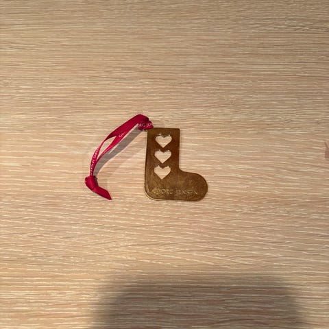 Georg Jensen julepynt i messing med forskellige motiver som stjerne, hjerte, fugl, klokke, snefnug og flere. Pynten leveres med en grøn fløjlspose til opbevaring, der kan rulles sammen og bindes med bånd. Velegnet til juletræspynt eller dekoration i julen.
