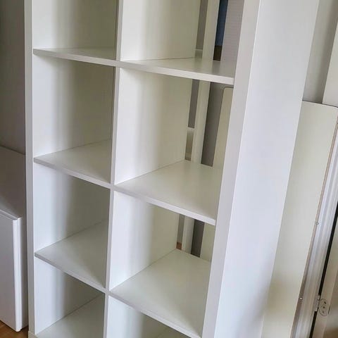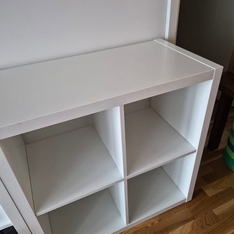 To IKEA reoler. Muligvis af Kallax typen. Den ene har indbyggede skuffer.