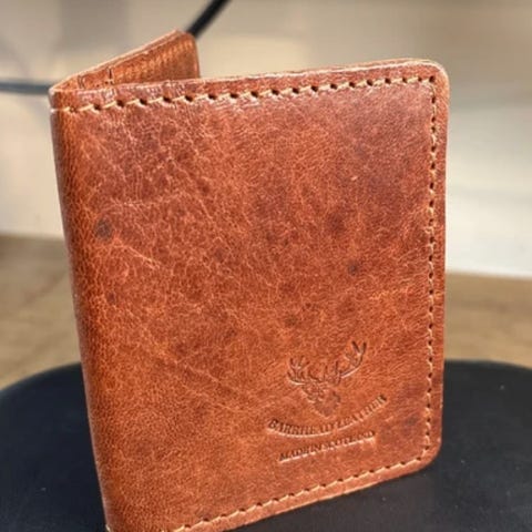Selling a brown “Genuine American Bison Leather” trifold wallet with a classic, slightly rugged look. It has visible grain and a soft, broken‑in feel that suits everyday use.