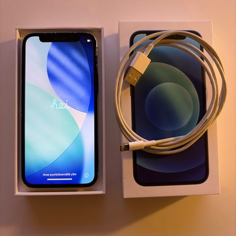 iPhone 12 Telefonen er brugt og har synlige brugsspor på bagsiden, men kan ikke ses med cover .Medfølger quad lock cover. Batteritilstand: 77%