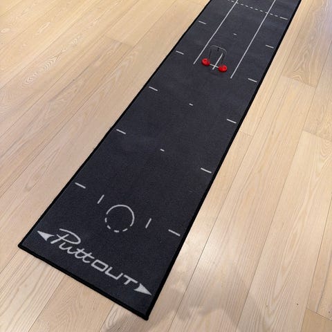 Måtten har en centreret sigtelinje, der vil hjælpe dig med at sigte mod målet, samt målte afstande fra 50 cm op til 3 meter. Du har også dedikerede linjer over hele måtten, som kan bruges til at træne din teknik. Størrelse: 66 x 400 cm det er inklusiv puttig aid