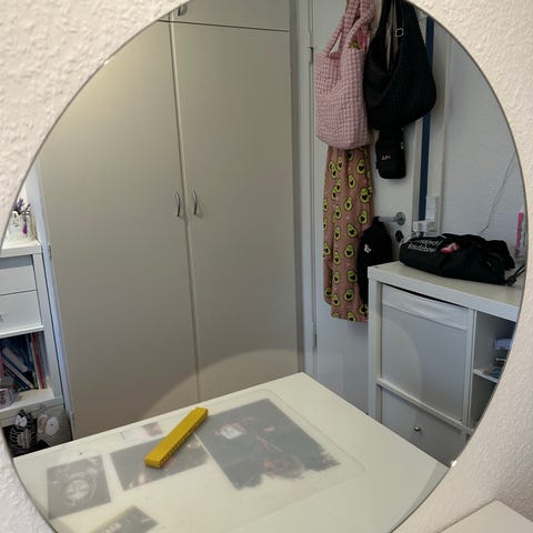 Rundt spejl med sort ramme