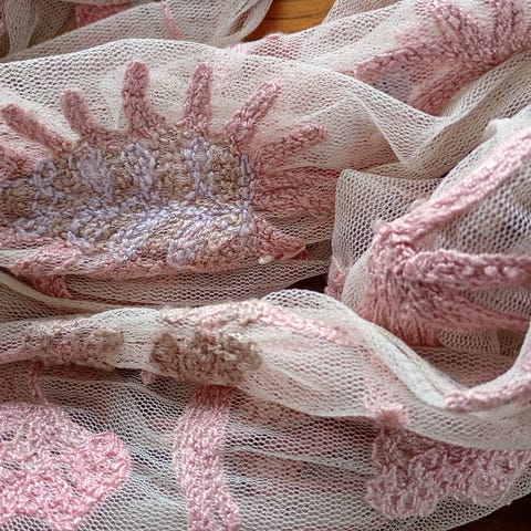 Det måler ca 20 x 120 cm men har tendens til at creppe sig sammen.