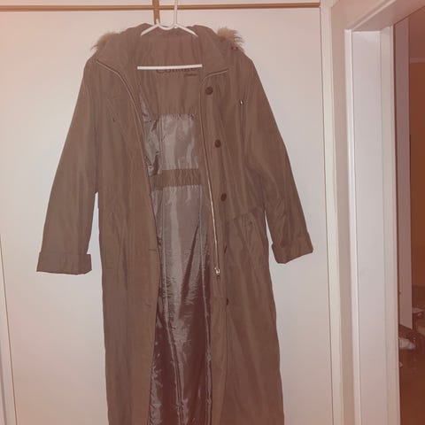 Virkelig flot figursyet swingfrakke i quiltet velour med pelskanter, Collectif London. Nypris kr. 1.600,00. Aldrig brugt, desværre købt for stor.