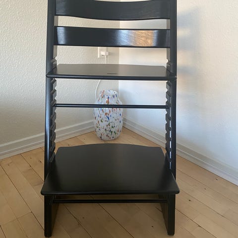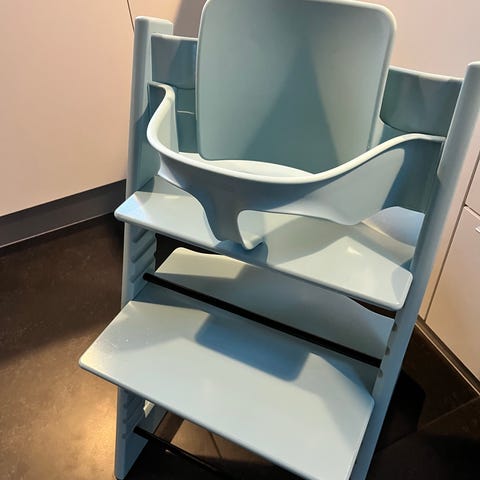 Trip trap stol ( grøn ) med indsats og bakkebord i grå farve