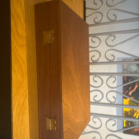 Cigarkasse med låg i træ og sort kant