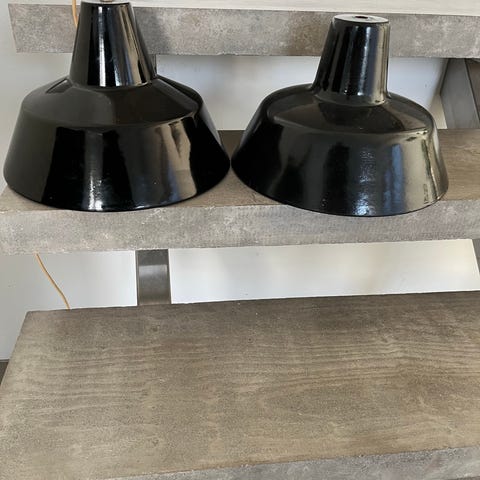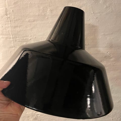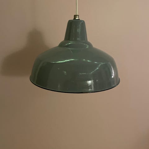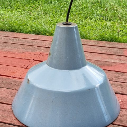 Gammel værkstedslampe med patina. Der er slået en flig af malingen (tjek billedet)