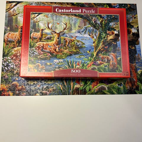 Castorland Puzzle med 1000 brikker, der forestiller et naturmotiv med bjerge, sø og træer. Puslespillet er egnet til voksne og børn og er fremstillet af papmateriale.