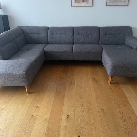 God og velholdt sofa med chaiselong i grå.