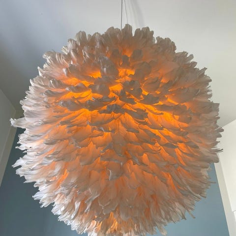 En flot blød fjer lampe lige til ethvert rum giver den bedste bløde belysning nypris 1800kr brugt men i den bedste tilstand