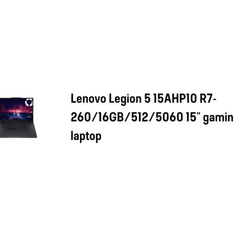 Lenovo Legion 5 RGB 15,6" bærbar computer med AMD Ryzen 5 processor, AMD Radeon grafik og NVIDIA GeForce RTX grafik. Skærmopløsning på 1920x1080 pixels. Modellen har en RGB-baggrundsbelyst tastatur og er velegnet til gaming og almindelig brug. Normalpris: 7.000 kr.