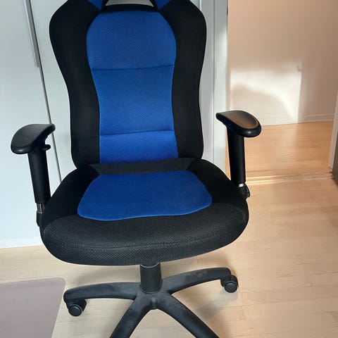 Fin gamerstol i blå/sort farve. Kan justeres i ryggen og højden