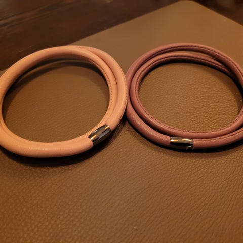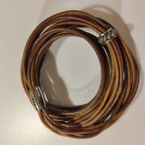 & Other Stories halskæde til kvinder, lavet af forgyldt materiale og sølv. Halskæden har en rund lås med mærkning, og et sort bånd som kæde.