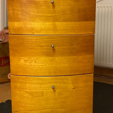 Robust kommode i massivt kirsebærtræ. Har lidt slidmærker som ses på billedet, men fungerer fint.