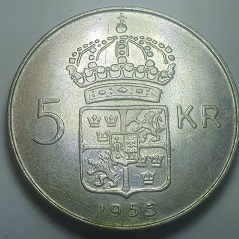 5 Kroner 1964 Frederik IX (Wedding of Anne-Marie) 1964 Non-circulating coin Wedding of Princess Anne Marie Silver (.800) 17 g 33 mm KM# 854,