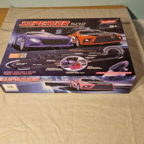 Racerbane, Carrera Carrera Digital 143, skala 1:43, En stor bane med uendelig mange fede layout (den kompakte opstilling på billedet bruger kun 25% af de lige baner) . Tre biler kører samtidig og kan skifte bane på de røde strækninger, som der er 4 stk. af. Der er 6 biler i forskellige klasser for forbedret variation. Omgangstælleren viser position, samlet tid og bedste omgang for hver kører. Der medfølger rigeligt med søjler til at hæve banen med. Der er masser af autoværn i både de høje og lave slags. Det er rigeligt med ekstra børster og pinde. Der er rigeligt med clips til at holde banerne sammen, så bilerne får nok power hele vejen rundt.
