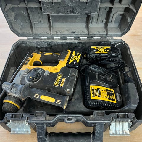 DeWalt DCH133 18V XR Brushless borehammer med børsteløs motor. Batteridrevet værktøj designet til bore- og mejselopgaver med slagfunktion. Udstyret med ergonomisk greb.