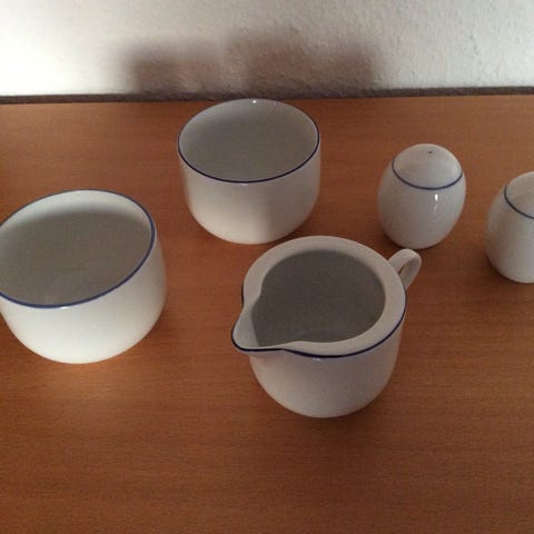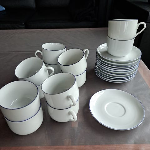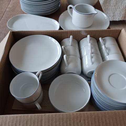 Kasse med kopper og tallerkner - se fotos - sælges kun samlet - skal afhentes i Aabenraa