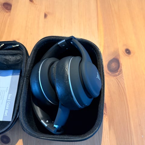 Argon hovedtelefoner i sort farve. Over-ear design med polstrede ørepuder og justerbar hovedbøjle. Trådløs forbindelse med indbygget kontrolknapper. + Case til opbevaring og transport.