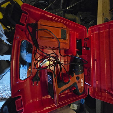 Hilti TE 905 AVR mejselhammer med flere mejsler og tilbehør i medfølgende transportkasse. Værktøjet er egnet til professionelt brug ved nedbrydning og mejsling i beton og murværk.