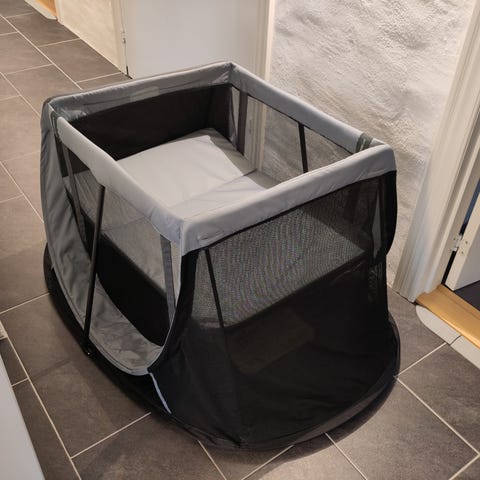 Rejseseng inkl. foldemadras. Brugt 1 uge.