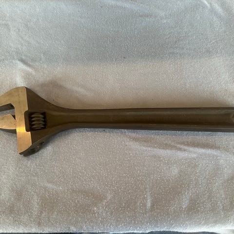 Bahco Skiftenøgle 8 tommer med alligator-ende (f.eks. til bolte og møtrikker som er skruet i smadder) næsten ikke slidt. Er blå-hammerlakeret (kan nemt fjernes med stålbørste) men det ser fedt ud efter min mening. Svensknøgle 250kr #huldremosen